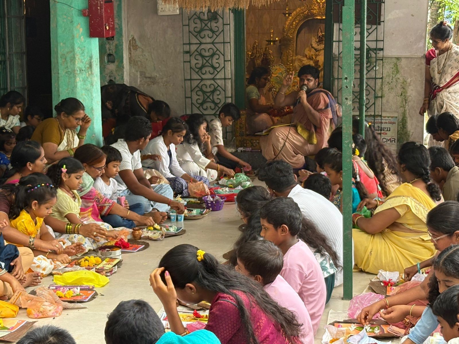 VZM: దేవి శరన్నవరాత్రిలో భాగంగా శ్రీ సుబ్రహ్మణ్య స్వామి దేవస్థానంలో సోమవారం మూలా నక్షత్రం సందర్బంగా శ్రీ సరస్వతి పూజను పిల్లలచే జరిపించారు. ఆలయ అర్చకులు సోమశేఖర్ ఆధ్వర్యంలో సుమారు 300 మంది పిల్లలు హాజరైనట్టు ఛైర్మన్ శంకర్ రెడ్డి తెలిపారు. అనంతరం పిల్లలకు పుస్తకాలు,పెన్సిల్స్,పెన్స్ పంచిపెట్టారు. అలగ్గే ఈ కార్యక్రమంలో భక్తులు పాల్గొన్నారు.
