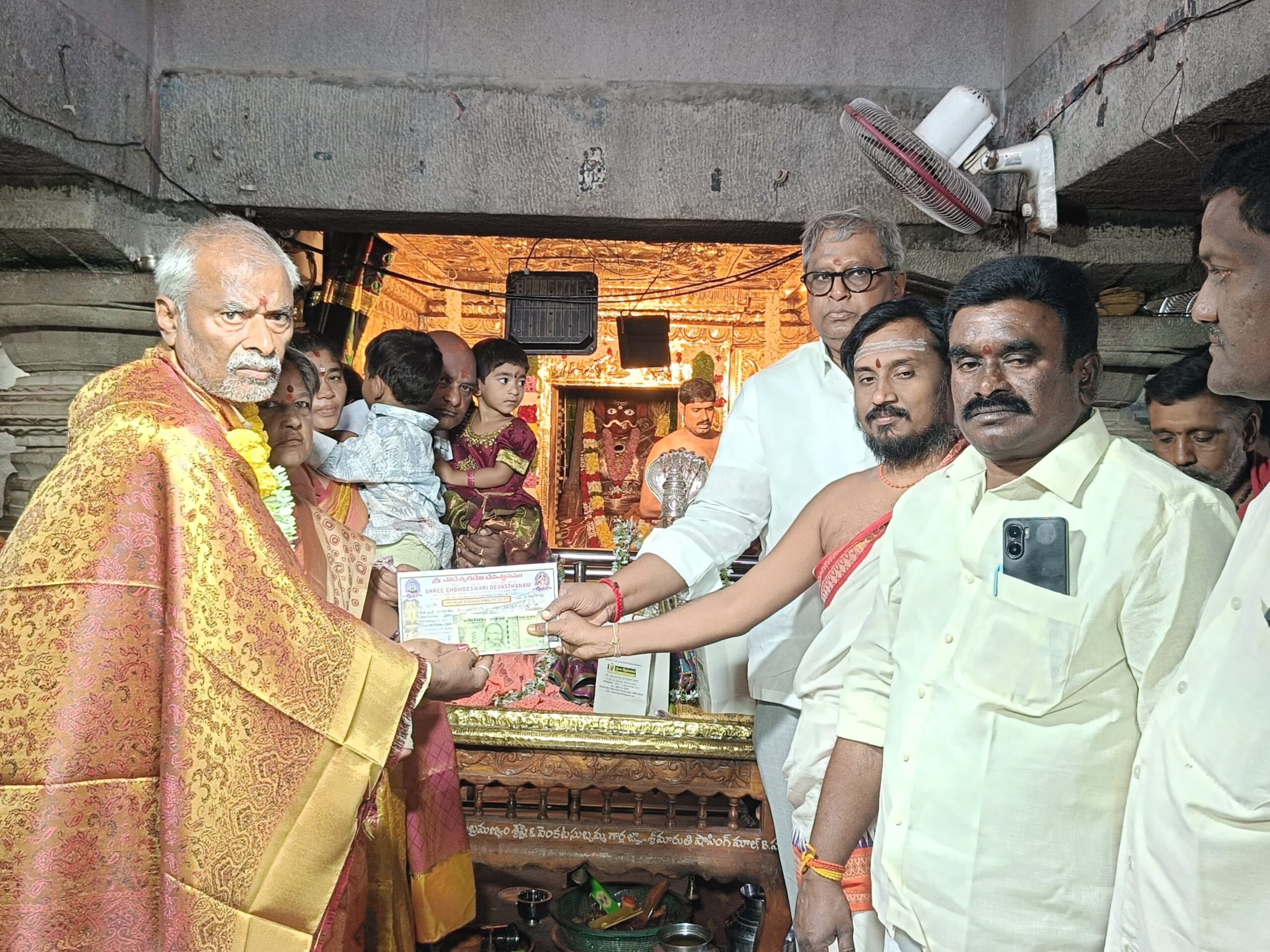 NDL: బనగానపల్లె మండలం నందవరం గ్రామంలో వెలసి ఉన్న చౌడేశ్వరి దేవి అమ్మవారి ఆలయంలో సోమవారం వెంకట లక్ష్మమ్మ కుటుంబ సభ్యులు అమ్మవారికి ప్రత్యేక పూజలు నిర్వహించారు. అనంతరం చౌడేశ్వరి దేవి అమ్మవారి ఆలయ అభివృద్ధి కోసం వారు 60 వేల రూపాయల విరాళాన్ని ఆలయ కమిటీ సభ్యులకు అందజేశారు. అనంతరం వారికి ఆలయ అర్చకులు తీర్థ ప్రసాదాలను ఇచ్చారు.