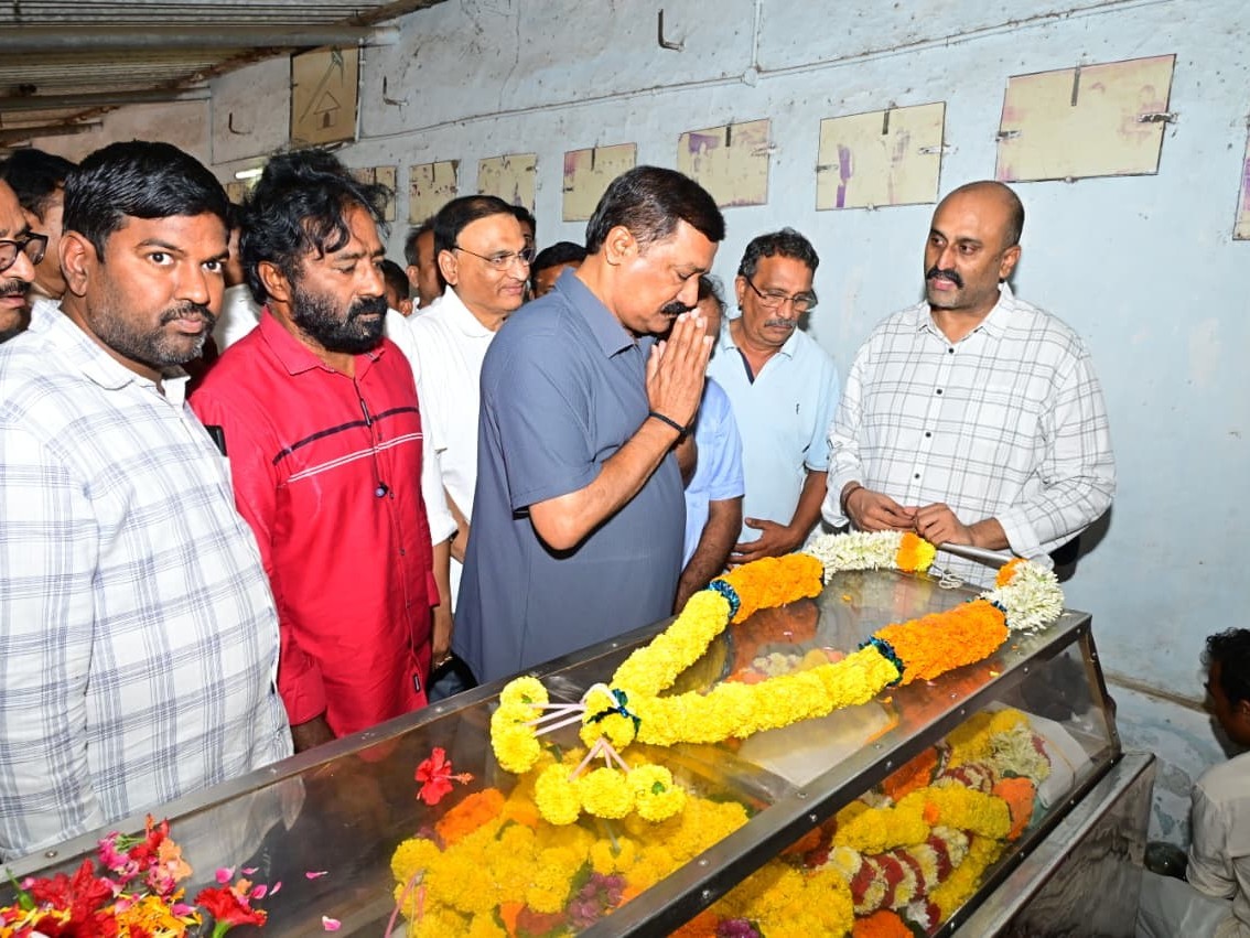VSP: మాజీ మంత్రి, టీడీపీ సీనియర్ నేత ఆర్ఎస్డీపీ అప్పల నరసింహరాజు పార్థీవ దేహానికి భీమిలి ఎమ్మెల్యే గంటా శ్రీనివాసరావు బుధవారం ఉదయం పద్మనాభం మండలం పాండ్రంగిలో నివాళులర్పించారు. ఆయన సేవలను కొనియాడుతూ నిజాయతీ రాజకీయాలకు ప్రతీకగా నిలిచారని అన్నారు. కుమారుడు పృధ్వీతో పాటు కుటుంబ సభ్యులను ఓదార్చి ధైర్యం చెప్పారు.