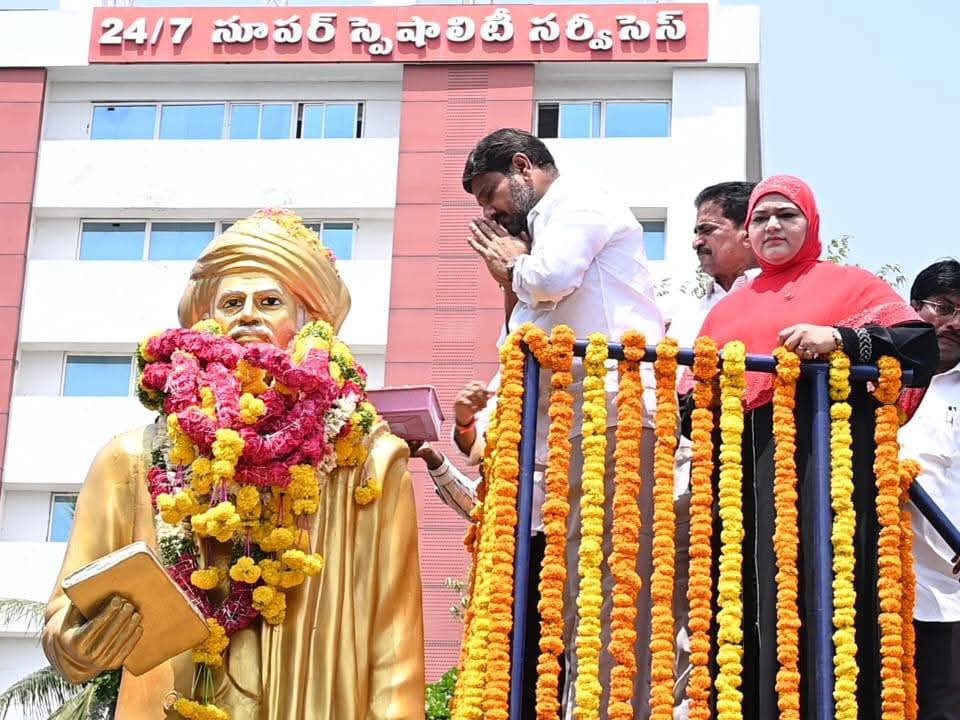 GNTR: మహాత్మా జ్యోతిరావు పూలే జయంతి సందర్భంగా గుంటూరు నగరంలోని హిందూ కళాశాల వద్ద ఉన్న పూలే విగ్రహానికి గుంటూరు తూర్పు నియోజకవర్గ ఎమ్మెల్యే మహమ్మద్ నసీర్ పూలమాలలు వేసి నివాళులర్పించారు. ఈ సందర్భంగా ఎమ్మెల్యే మాట్లాడుతూ.. సమాజంలో కులవివక్ష నిర్మూలన, మహిళా సాధికారత కోసం పూలే చేసిన సేవలు చిరస్మరణీయమన్నారు.