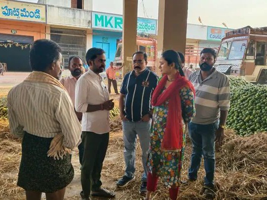 అనంతపురం మార్కెట్ యార్డ్ చైర్‌పర్సన్ బల్లా పల్లవి శనివారం యార్డ్‌లో ఆకస్మికంగా పర్యటించారు. చీనీ రైతులు, పశువుల వ్యాపారులు, కోళ్ల వ్యాపారులతో నేరుగా మాట్లాడి సమస్యలను తెలుసుకున్నారు. క్షేత్రస్థాయిలో ఉన్న పరిస్థితులను స్వయంగా పరిశీలించారు. రైతులు, వ్యాపారుల కష్టాలను అర్థం చేసుకున్నామని, త్వరలోనే వాటి పరిష్కారానికి చర్యలు తీసుకుంటామని హామీ ఇచ్చారు.