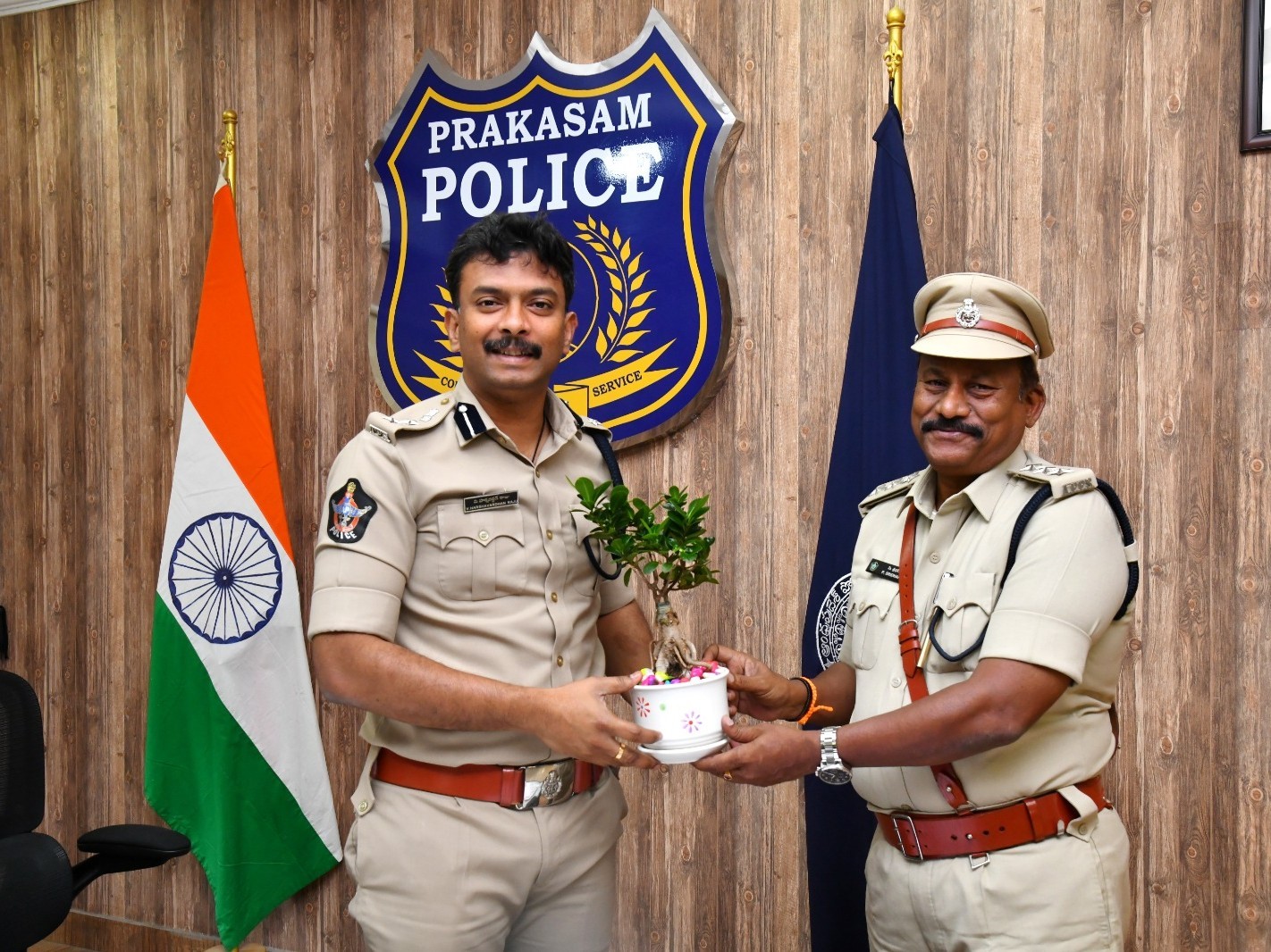 ప్రకాశం: ఒంగోలు మహిళా పోలీస్ స్టేషన్కు నూతన డీఎస్పీగా బాధ్యతలు స్వీకరించిన పీ. శ్రీధర్ సోమవారం జిల్లా పోలీస్ కార్యాలయంలో ఎస్పీ వీ. హర్షవర్ధన్ రాజు (ఐపీఎస్)ను మర్యాదపూర్వకంగా కలిశారు. ఈ సందర్భంగా ఎస్పీ శుభాకాంక్షలు తెలుపుతూ.. మహిళలు, పిల్లల కేసులపై ప్రత్యేక దృష్టి పెట్టాలని సూచించారు. బాధితులకు తక్షణ న్యాయం అందేలా చర్యలు తీసుకోవాలని ఆదేశించారు.