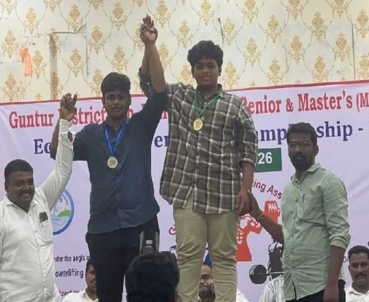 GNTR: మంగళగిరిలో జరిగిన జిల్లా పవర్లిఫ్టింగ్ పోటీల్లో తెనాలికి చెందిన 9వ తరగతి విద్యార్థి వడ్డేపల్లి కార్తీక్ గౌరీనాధ్ సత్తాచాటాడు. 105 కేజీల సబ్జూనియర్ విభాగంలో 275 కిలోలు ఎత్తి బంగారు పతకం సాధించాడు. ఆల్రౌండ్ విభాగంలో కాంస్యాన్ని అందుకొని ద్విపతక విజయం నమోదు చేశాడు. ఈ మేరకు పలువురు అతన్ని అభినందించారు