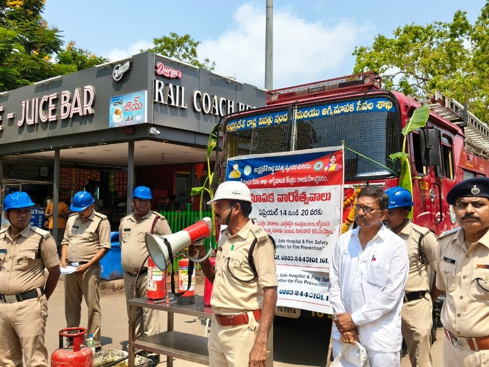 E.G: రాజమండ్రిలోని రైల్వే స్టేషన్, బస్ గ్యారేజ్, బస్ కాంప్లెక్స్లలో సహాయ అగ్నిమాపక అధికారి పి.శ్రీనివాస్ ఆధ్వర్యంలో బుధవారం అగ్నిమాపక అవగాహన కార్యక్రమం నిర్వహించారు. ఈ కార్యక్రమంలో గ్యాస్, ఆయిల్ తదితర అగ్ని ప్రమాదాల సమయంలో తీసుకోవలసిన జాగ్రత్తలు వివరించారు. విపత్తుల నుంచి సురక్షితంగా బయటపడే విధానాలను ప్రత్యక్ష ప్రదర్శనలు చేశారు.