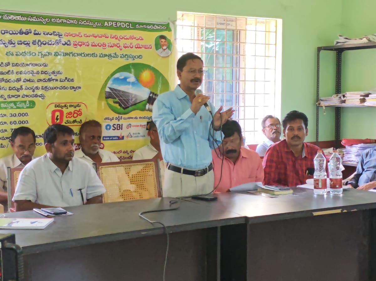 AKP: మాకవరపాలెం మండలం శెట్టిపాలెంలో విద్యుత్ సమస్యలపై అవగాహన సదస్సు బుధవారం నిర్వహించారు. ఈ సందర్భంగా పీఎం సూర్యఘర్ పథకం, ప్రతి ఇంటిపై సోలార్ ప్యానల్స్ సబ్సిడీ గురించి అధికారులు వివరించారు. ఇందులో నర్సీపట్నం ఎగ్జిక్యూటివ్ ఇంజనీర్ ఎస్.రామకృష్ణ, డిప్యూటీ ఇంజనీర్ కేవి.త్రినాథ్, ఏఈ బాలకృష్ణ, మాజీ సర్పంచ్ అల్లు రామునాయుడు పాల్గొన్నారు.