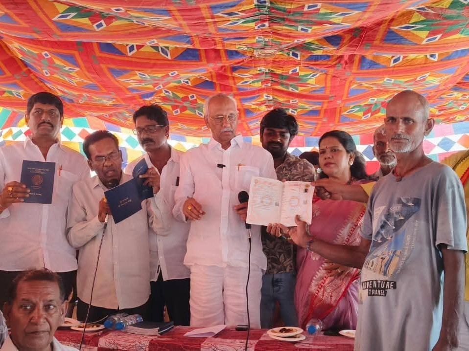W.G: వీరవాసరం (మం) తోలేరు గ్రామంలోని రైతు సేవ కేంద్రం వద్ద బుధవారం గ్రామ సభ, పునఃసర్వేలో కార్యక్రమం జరిగింది. ఇందులో భాగంగా రాజముద్ర పట్టాదారు పాస్ పుస్తకాలతో రైతన్నలకు ఎమ్మెల్యే పులపర్తి రామాంజనేయులు అందజేశారు. ఈ సందర్భంగా ఆయన మాట్లాడుతూ.. తప్పులను సరిదిద్ది భూ వివాదాలు లేకుండా చేయడమే కూటమి ప్రభుత్వ కర్తవ్యమని చెప్పుకొచ్చారు.