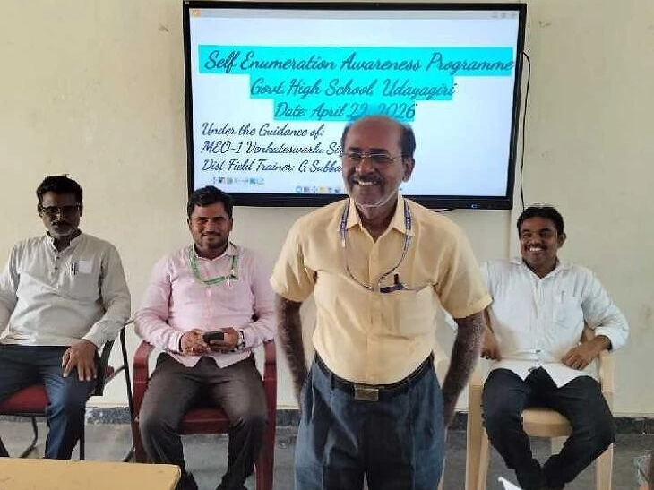 NLR: ఉదయగిరి ప్రభుత్వ ఉన్నత పాఠశాలలో టీచర్ల చేత ఎంఈవో వెంకటేశ్వర్లు స్వీయగణన చేయించారు. ప్రతి టీచర్ ఇంటి వివరాలను ఆన్లైన్లో పొందుపరిచారు. అనంతరం ఎంఈవో మాట్లాడుతూ.. ప్రతి ఒక్కరూ తమ ఫోన్ల నుంచి ఇంటి వివరాలను ఈనెలాఖరు లోపు నమోదు చేసుకోవాలని చెప్పారు. కార్యక్రమంలో డిస్టిక్ ఫీల్డ్ ట్రైనర్ సుబ్బారెడ్డి, HM శ్రీనివాసులు పాల్గొన్నారు.