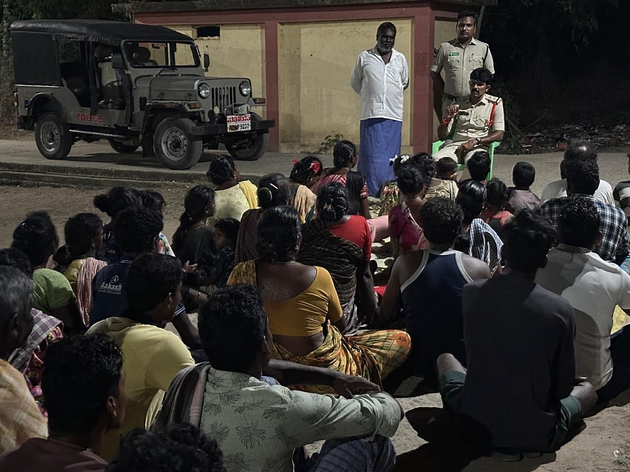 బాపట్ల జిల్లా చందోలు గ్రామంలోని ఎస్టీ కాలనీలో శనివారం రాత్రి పోలీసులు ‘పల్లె నిద్ర’ కార్యక్రమాన్ని నిర్వహించారు. చందోలు ఎస్ఐ తన సిబ్బందితో కలిసి కాలనీలో బస చేసి, స్థానికులతో ముఖాముఖి మాట్లాడారు. గ్రామంలో శాంతిభద్రతలు, రాత్రి గస్తీ, స్థానిక మౌలిక సమస్యలను ప్రజలను అడిగి తెలుసుకున్నారు. ఏదైనా సమస్య ఉంటే వెంటనే పోలీసులకు సమాచారం అందించాలని కోరారు.