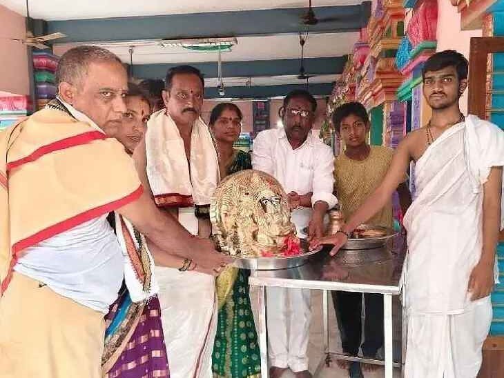 కోనసీమ: కొత్తపేట మండలం మందపల్లిలో శ్రీ మందేశ్వర స్వామి దేవస్థానం పరిధిలో ఉన్న ఉమా నాగేశ్వర స్వామి ఆలయంలో గణపతికి ఆదివారం విజయవాడ కు చెందిన పల్లపు రాజు వెంకట సత్యనారాయణ దంపతులు పంచలోహ కవచాన్ని అందజేసి ప్రత్యేక పూజలు నిర్వహించారు. ఆలయ పురోహితుడు వెంకన్న ఆధ్వర్యంలో ఈ కార్యక్రమం శాస్త్రోక్తంగా నిర్వహించారు.