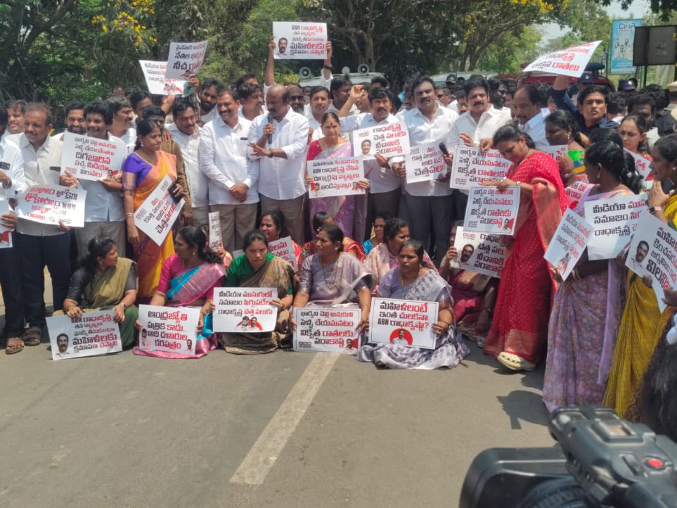 ప్రకాశం: ఒంగోలు మండలం త్రోవగుంటలోని ఆంధ్రజ్యోతి కార్యాలయం సమీపంలో కరవది గ్రామ్ వెళ్లే జంక్షన్ వద్ద వైసీపీ శ్రేణులు నిరసన వ్యక్తం చేస్తూ రోడ్డుపై బైఠాయించారు. ఆంధ్రజ్యోతి ఏబీఎన్ రాధాకృష్ణకు వ్యతిరేకంగా నినాదాలు చేస్తూ ప్లే కార్డులతో దర్శి శాసనసభ్యులు బూచేపల్లి శివప్రసాద్ రెడ్డి, ఒంగోలు ఇంఛార్జ్ రవి, జడ్పీ ఛైర్మన్ వెంకాయమ్మతో పాటు పలువురు నాయకులు పాల్గొన్నారు.