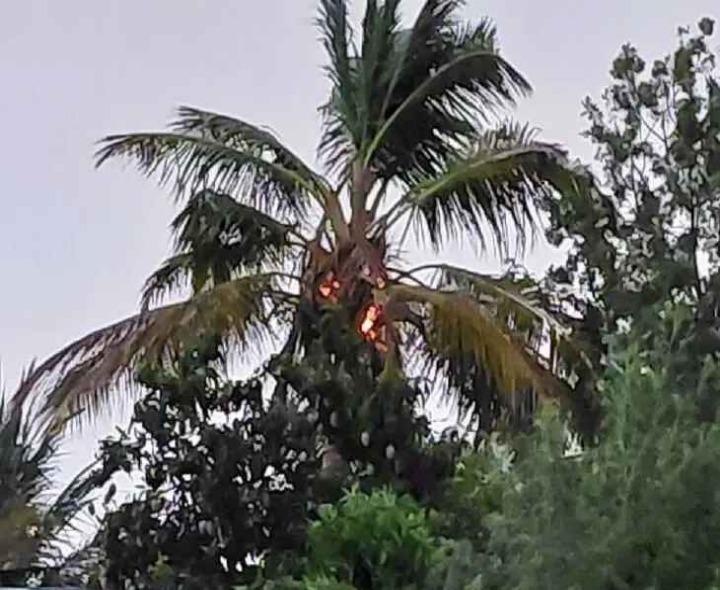 NDL: జిల్లాలోని పలు మండలాల్లో ఇవాళ సాయంత్రం ఈదురుగాలులతో కూడిన వర్షం పడింది. సిరివెళ్ల మండలంలోని వెంకటేశ్వరపురం గ్రామంలో పిడుగు పడటంతో కొబ్బరి చెట్టుపై మంటలు చెలరేగాయి. ఉరుములు, మెరుపులతో వర్షం పడే వేళ ప్రజలు అప్రమత్తంగా ఉండాలని అధికారులు సూచించారు. వర్షం కురుస్తున్నప్పుడు బయటకు రావద్దని, చెట్ల కింద ఆశ్రయం పొందకూడదని హెచ్చరికలు జారీ చేశారు.