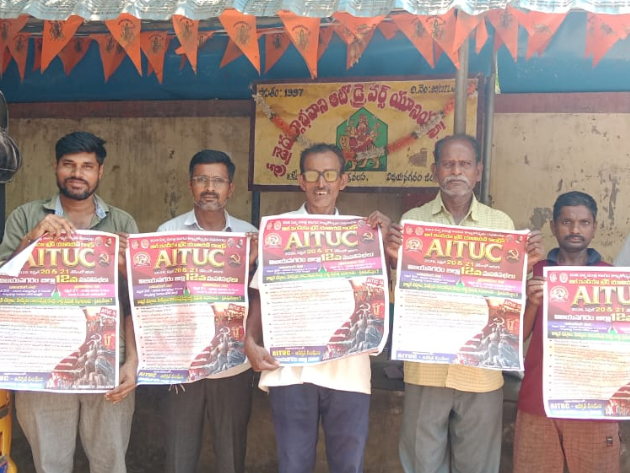 VZM: కొత్తవలస కోటపాడు రోడ్డులో ఉన్న శ్రీ జయదుర్గభవానీ ఆటో స్టాండ్ వద్ద ఏఐటీయూసీ జిల్లా కార్యదర్శి డేగల అప్పలరాజు ఆధ్వర్యంలో ఈనెల 20, 21,12వ, మహాసభ విజయనగరంలోని న్యూపూర్ణ జంక్షన్ వద్ద జరుగుతుందని చెప్పారు. మహాసభలను జయప్రద్ధం చేయాలని ఆయన కోరారు. దానికి సంబంధించి గోడ పత్రికను శుక్రవారం విడుదల చేశారు. ఈ మహాసభలకు రాష్ట్ర నాయకులు హాజరవుతారని తెలిపారు.