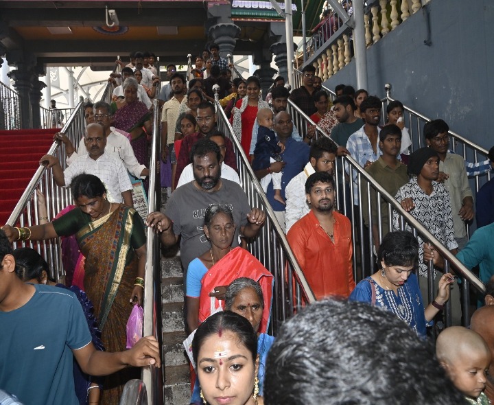 NTR: విజయవాడ ఇంద్రకీలాద్రి పై సంకటహర చతుర్థి సందర్భంగా ఇంద్రకీలాద్రిపై భక్తుల రద్దీ పెరిగింది. ఆర్జిత సేవల్లో భక్తులు పెద్దఎత్తున పాల్గొన్నారు. రద్దీ నియంత్రణకు రూ.500 టికెట్లు, అంతరాలయ దర్శనం నిలిపివేశారు. వృద్ధులు, వికలాంగులకు ప్రత్యేక దర్శనం కల్పించారు. ఈవో శీనానాయక్ పరిశీలించి సమస్యల పరిష్కారానికి ఆదేశాలు జారీ చేశారు.
