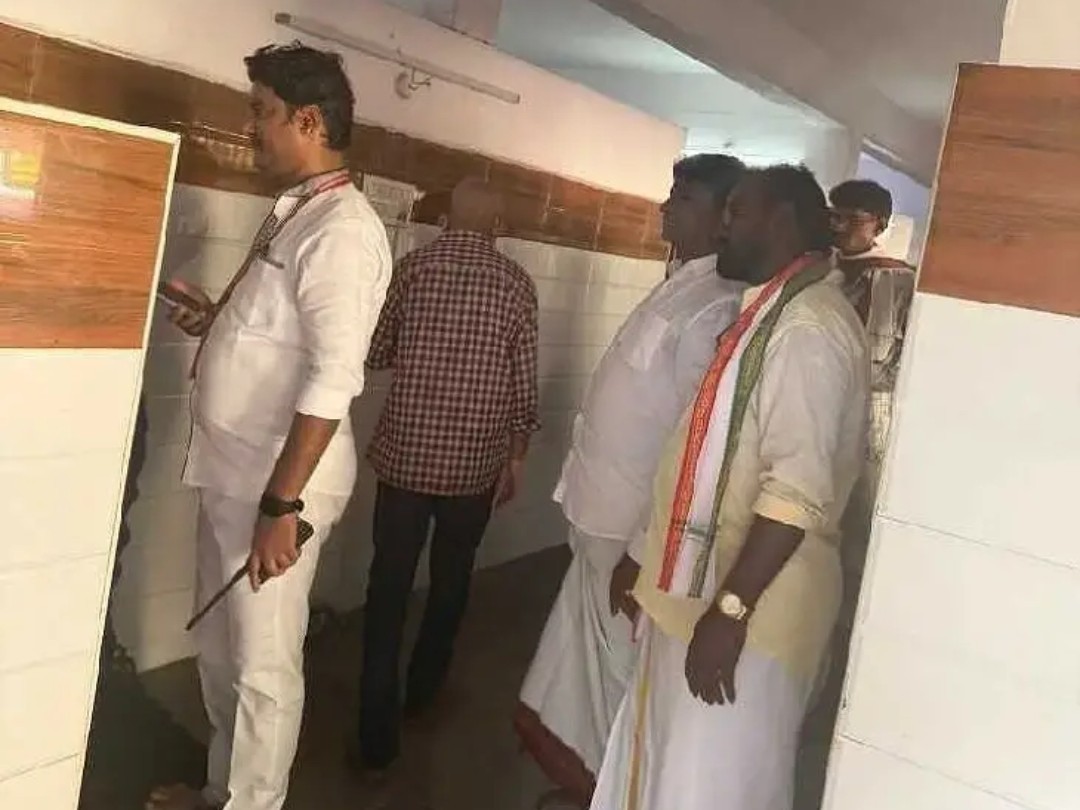 TPT: శ్రీకాళహస్తి గుడికి అనుబంధంగా ఉన్న కైలాస సదన్, గంగా సదన్ వసతి గృహాలను ఆలయ ఛైర్మన్ కొట్టే సాయి ప్రసాద్ గురువారం సందర్శించారు. భక్తులకు అందుతున్న సేవలు, వసతి సౌకర్యాలు, పరిశుభ్రత, నిర్వహణ తదితర అంశాలను పరిశీలించారు. విధి నిర్వహణలో అలసత్వం వహించిన ఉద్యోగిపై ఆగ్రహం వ్యక్తం చేశారు. పద్ధతి మార్చుకోవాలని, భక్తులకు మరింత మెరుగైన సేవలు అందించాలని ఆదేశించారు.