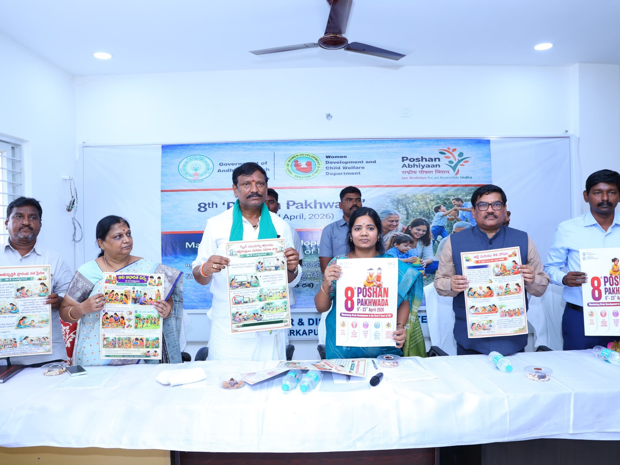మార్కాపురం జిల్లా కలెక్టర్ కార్యాలయంలో ఐసీడీఎస్ ఆధ్వర్యంలో పోషణ పక్వాడ కార్యక్రమంలో భాగంగా గురువారం వాల్ పోస్టర్ను ఆవిష్కరించారు. ఈ కార్యక్రమంలో ఎమ్మెల్యే కందుల నారాయణరెడ్డి, జిల్లా కలెక్టర్ విజయ సునీత పాల్గొన్నారు. ఈ సందర్భంగా వారు మాట్లాడుతూ.. ప్రభుత్వం అమలు చేస్తున్న సంక్షేమ పథకాలు ప్రజలకు సమర్థవంతంగా చేరేలా అధికారులు కృషి చేయాలని సూచించారు.
