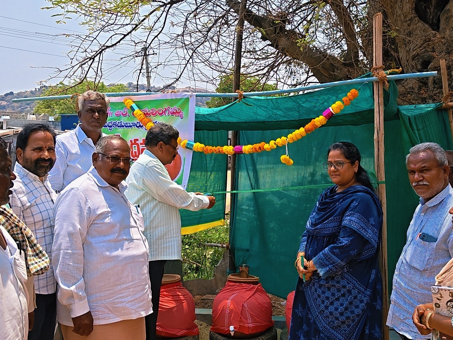 KRNL: పెద్దకడబూరు MRO కార్యాలయ ఆవరణలో ఏర్పాటు చేసిన చలివేంద్రాన్ని తహసీల్దార్ వలిబాషా ఇవాళ ప్రారంభించారు. వేసవి తీవ్రతను దృష్టిలో ఉంచుకుని కార్యాలయానికి వచ్చే ప్రజలకు తాగునీటి సౌకర్యం కల్పించేందుకు ఈ చలివేంద్రాన్ని ఏర్పాటు చేసినట్లు ఆయన తెలిపారు. రోజువారీగా కార్యాలయానికి వచ్చే ప్రజలు దాహార్తితో ఇబ్బంది పడకుండా ఉండేందుకు చలివేంద్రం ఉపయోగపడుతుందన్నారు.