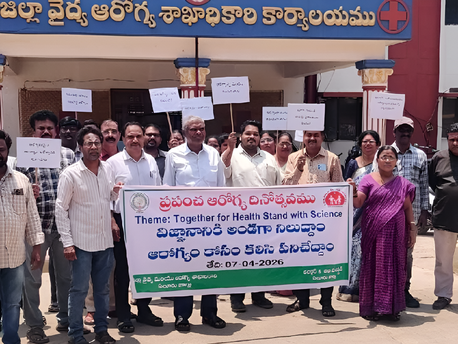 ELR: ప్రపంచ ఆరోగ్య దినోత్సవం సందర్భంగా జిల్లా వైద్య శాఖ కార్యాలయంలో ఇన్ఛార్జ్ వైద్యాధికారి లక్ష్మీనారాయణ అవగాహన ర్యాలీ నిర్వహించారు. ఆరోగ్య సమస్యలు వచ్చినప్పుడు వైద్యులను సంప్రదించాలని, పరిశుభ్రత పాటించడం ద్వారా వ్యాధులను నివారించవచ్చని తెలిపారు. ప్రభుత్వం అందిస్తున్న ఆరోగ్య సేవలను వినియోగించుకోవాలని సూచించారు.
