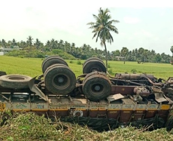 KKD: తాళ్లరేవు 216 జాతీయ రహదారిపై ప్రమాదం జరిగింది. ముమ్మిడివరం నుంచి ఒరిస్సాకు కొబ్బరికాయల లోడుతో వెళ్తున్న లారీ కింగ్ పిన్ విడిపోవడంతో నియంత్రణ కోల్పోయి పక్కనే ఉన్న స్తంభాన్ని ఢీకొట్టి పల్టీలు కొట్టింది. ఈ ప్రమాదంలో డ్రైవర్ స్వల్ప గాయాలతో ప్రాణాపాయం నుంచి బయటపడ్డారు. బాధితుడికి ప్రాథమిక చికిత్స అందించిన అనంతరం, మెరుగైన వైద్యం కోసం కాకినాడ ప్రభుత్వ ఆసుపత్రికి తరలించారు.