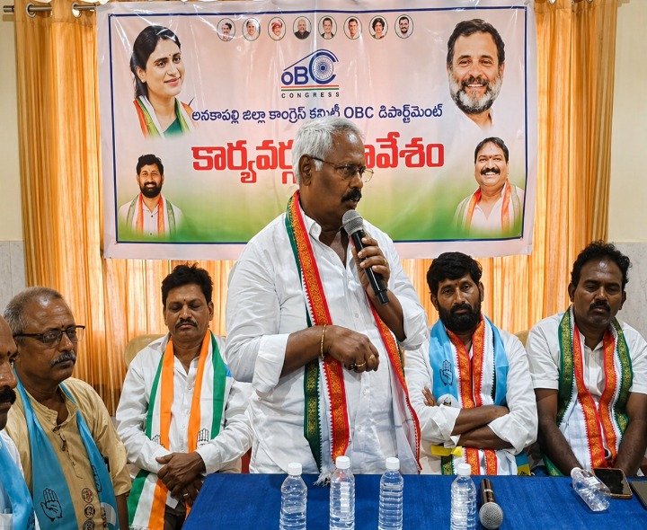 AKP: కాంగ్రెస్ పార్టీ శ్రేణులు స్థానిక సంస్థల ఎన్నికలకు సన్నద్ధం కావాలని జిల్లా కాంగ్రెస్ పార్టీ అధ్యక్షుడు మీసాల సుబ్బన్న పిలుపునిచ్చారు. మంగళవారం అనకాపల్లిలో ఓ హోటల్ లో కాంగ్రెస్ పార్టీ ఓబీసీ సమావేశం జరిగింది. ఈ సమావేశంలో సుబ్బన్న మాట్లాడుతూ.. స్థానిక సంస్థల ఎన్నికల్లో బీసీలకు 42 శాతం రిజర్వేషన్ అమలు చేయాలని డిమాండ్ చేశారు.