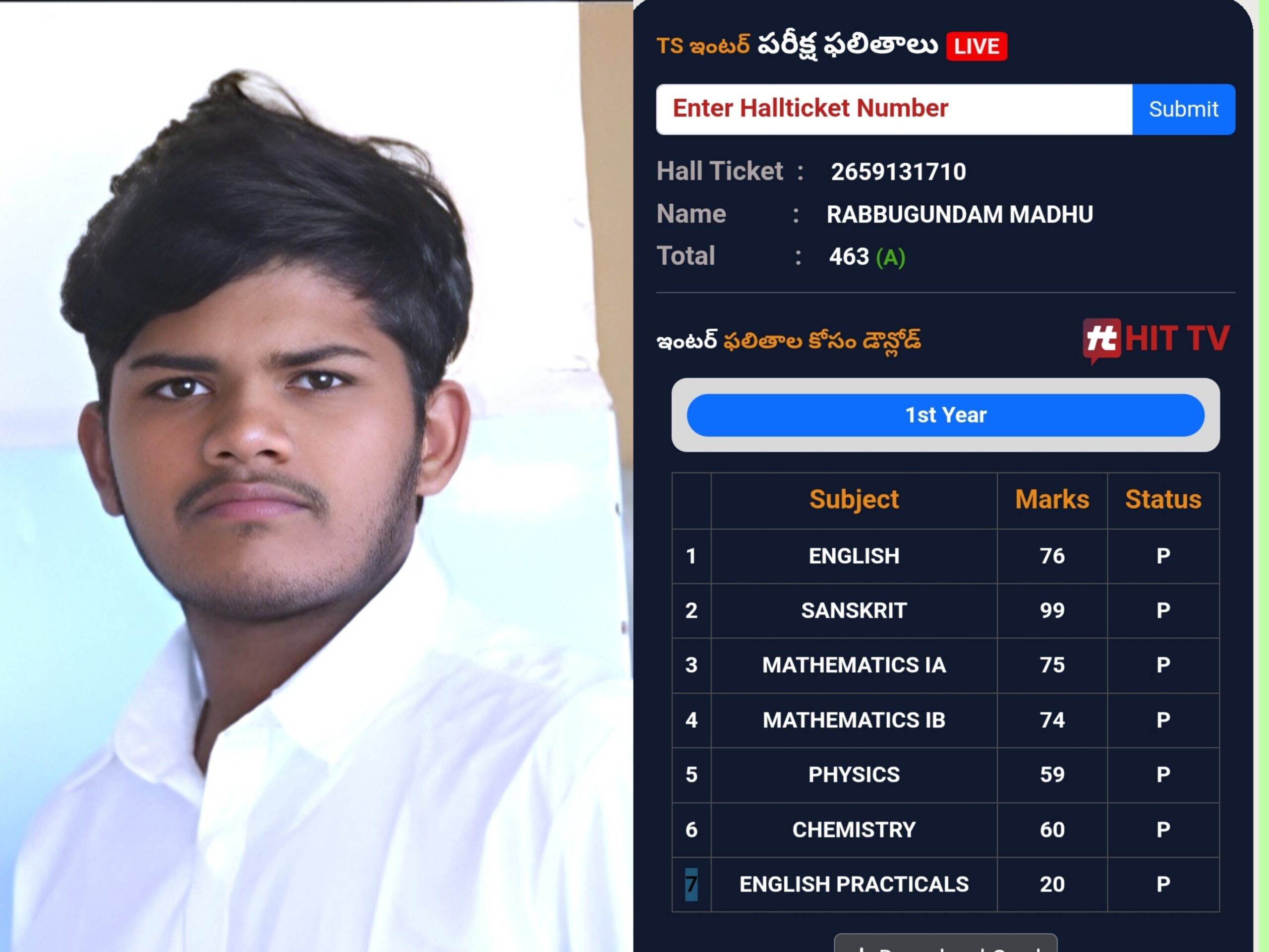 ATP: తెలంగాణ ఇంటర్మీడియట్ ఫస్ట్ ఇయర్ పరీక్ష ఫలితాల్లో గుంతకల్లు మండలం గొల్లల దొడ్డి గ్రామానికి చెందిన గోపాలకృష్ణ అనే కిరాణా వ్యాపారి కుమారుడు ఆర్.మధు అత్యంత ప్రతిభ కనబరిచారు. మొత్తం 470 మార్కులకు గాను 463 మార్కులు సాధించాడు. కుమారుడు విజయం సాధించడంతో తల్లిదండ్రులు హర్షం వ్యక్తం చేస్తున్నారు. గ్రామ ప్రజలు విద్యార్థికి శుభాకాంక్షలు తెలిపారు.