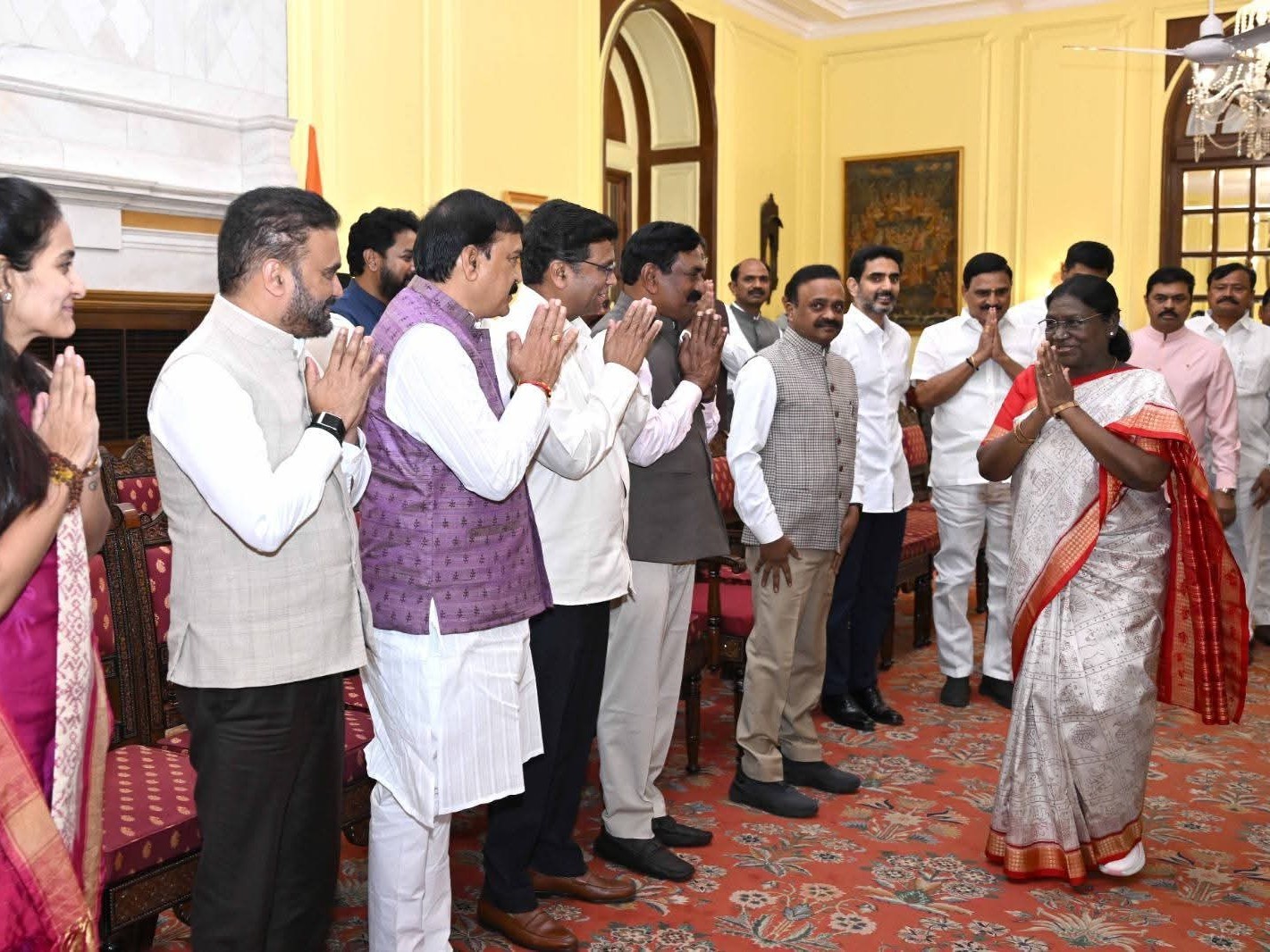 CTR: అమరావతికి చట్టబద్ధత కల్పించినందుకు రాష్ట్రపతి ద్రౌపది ముర్ముకు మంత్రి నారా లోకేష్ , చిత్తూరు ఎంపీ దగ్గుమళ్ల ప్రసాదరావు సహా కూటమి ఎంపీల బృందం కృతజ్ఞతలు తెలిపింది. రాష్ట్రపతి భవన్లో జరిగిన భేటీలో అమరావతి విశిష్టతపై వివరించే బుక్లెట్ను మంత్రి లోకేష్ సమర్పించారు. రాష్ట్రపతి ముర్ము, సీఎం చంద్రబాబు విజన్ను, భూములు ఇచ్చిన రైతులను అభినందించారు.
