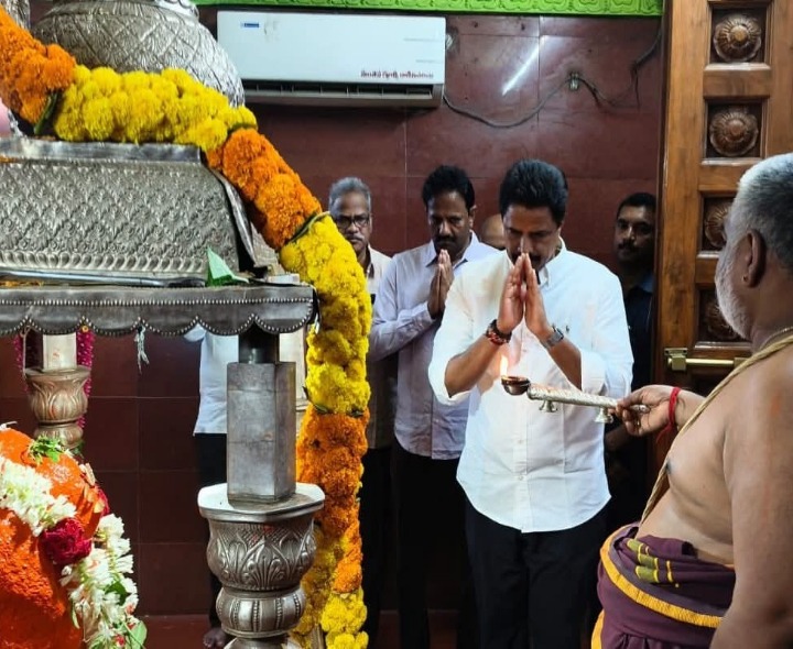 ELR: జంగారెడ్డిగూడెం మండలం గురవాయిగూడెం శ్రీ మద్ది ఆంజనేయ స్వామివారిని ఇవాళ తణుకు నియోజకవర్గ ఎమ్మెల్యే ఆరిమిల్లి రాధాకృష్ణ దర్శించుకున్నారు. ఈ సందర్భంగా ఆలయ అధికారులు ఆయనకు ఘన స్వాగతం పలికారు. అనంతరం ఎమ్మెల్యే స్వామివారిని దర్శించుకుని ప్రత్యేక పూజలు చేశారు. అలాగే ఆలయ వేద పండితులు ఆయనను ఘనంగా సత్కరించి ఆశీర్వచనాలు అందజేశారు.