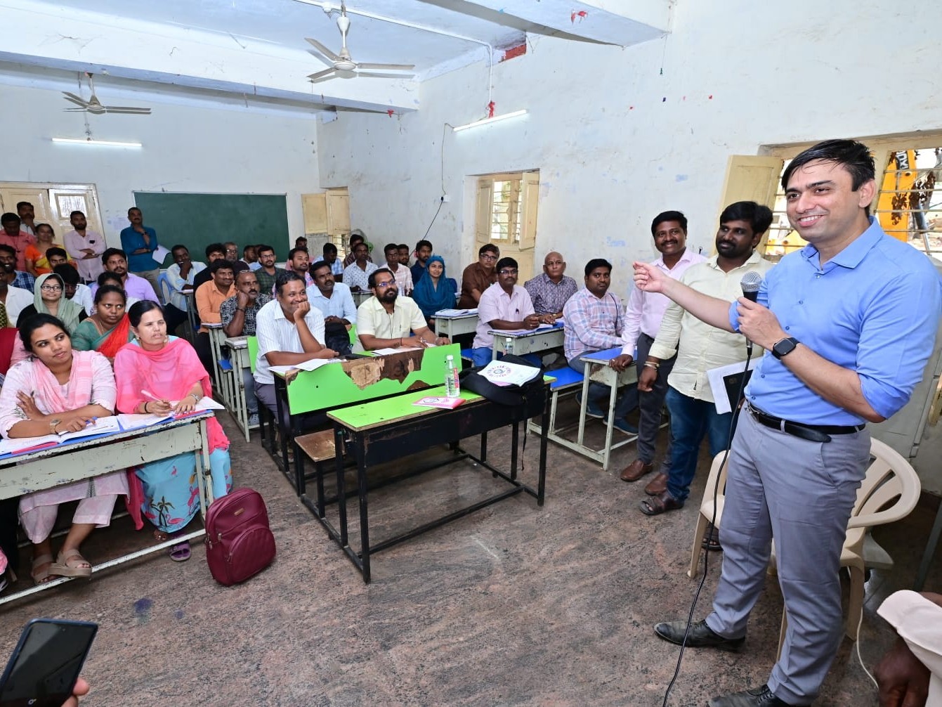 CTR: జన గణన -2027లో భాగంగా చిత్తూరు సంతపేట పీఎన్సీ ఉన్నత పాఠశాలలో జరుగుతున్న మొదటి దశ ఎన్యుమరేటర్లు, సూపర్వైజర్ల శిక్షణ తరగతులను గురువారం కలెక్టర్ సుమిత్ కుమార్ పరిశీలించారు. శిక్షణ తరగతులు ఏ విధంగా జరుగుతున్నాయో పరిశీలించి ఎన్యుమరేటర్లు, సూపర్వైజర్లతో మాట్లాడారు. శిక్షణలో భాగంగా జనగణన సర్వేపై పూర్తి స్థాయి అవగాహన పెంచుకోవాలన్నారు.