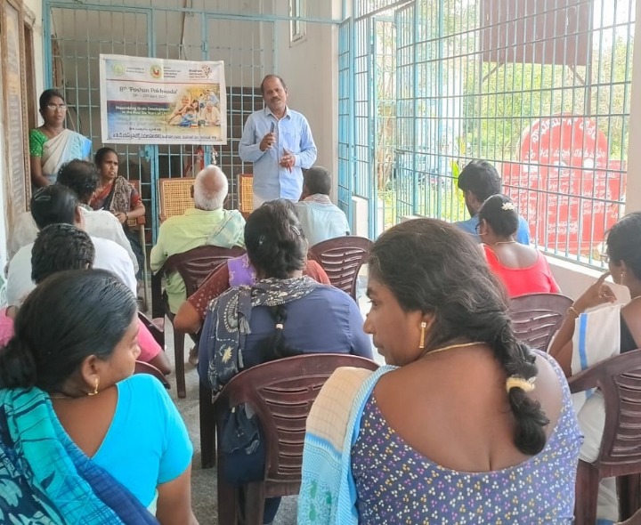 AKP: పిల్లల ఆరోగ్యంపై తల్లులు ప్రత్యేక శ్రద్ధ తీసుకోవాలని తెలుగు రైతు జిల్లా ప్రధాన కార్యదర్శి మల్ల వరహా నర్సింగరావు అన్నారు. ఐసీడీఎస్ సూపర్వైజర్ మీరాబి ఆధ్వర్యంలో ఇవాళ గ్రామంలో ‘పోషణ్ పక్వాడ’ కార్యక్రమాన్ని నిర్వహించారు. పిల్లలకు ఇంటిలో తయారుచేసిన పదార్థాలే పెట్టాలన్నారు. జింక్ ఫుడ్స్కు పిల్లలను దూరంగా ఉంచాలన్నారు.