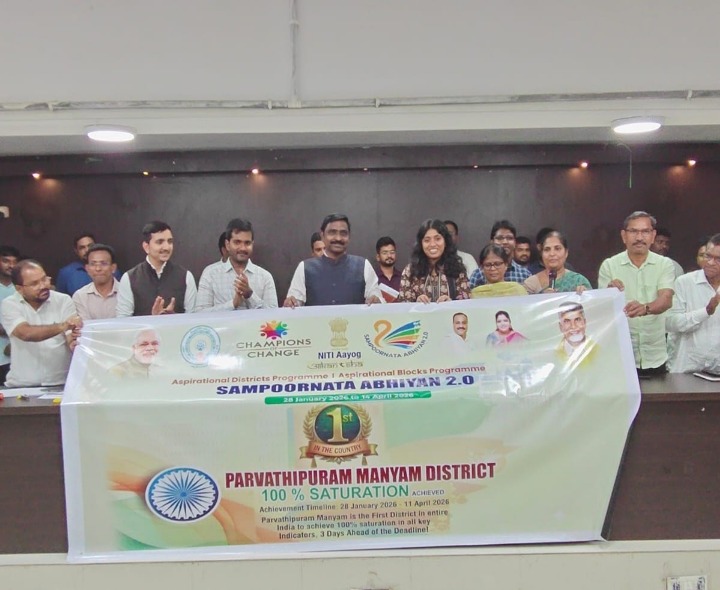 మన్యం జిల్లా అభివృద్ధి సూచికల్లో వేగంగా పురోగతి సాధిస్తూ జాతీయ స్థాయిలో ప్రత్యేక గుర్తింపు పొందుతోందని జిల్లా కలెక్టర్ తెలిపారు. తన పదవీకాలం 6 నెలలు పూర్తైన సందర్భంగా ఆయన మాట్లాడుతూ.. ఈ కాలంలో జిల్లా సాధించిన విజయాలు గర్వకారణమన్నారు. దేశవ్యాప్తంగా ఉన్న 112 ఆస్పిరేషనల్ జిల్లాల పోటీలో జిల్లా నిర్ణీత గడువు కంటే 3రోజుల ముందుగానే లక్ష్యాలు చేరుకున్నాయన్నారు.