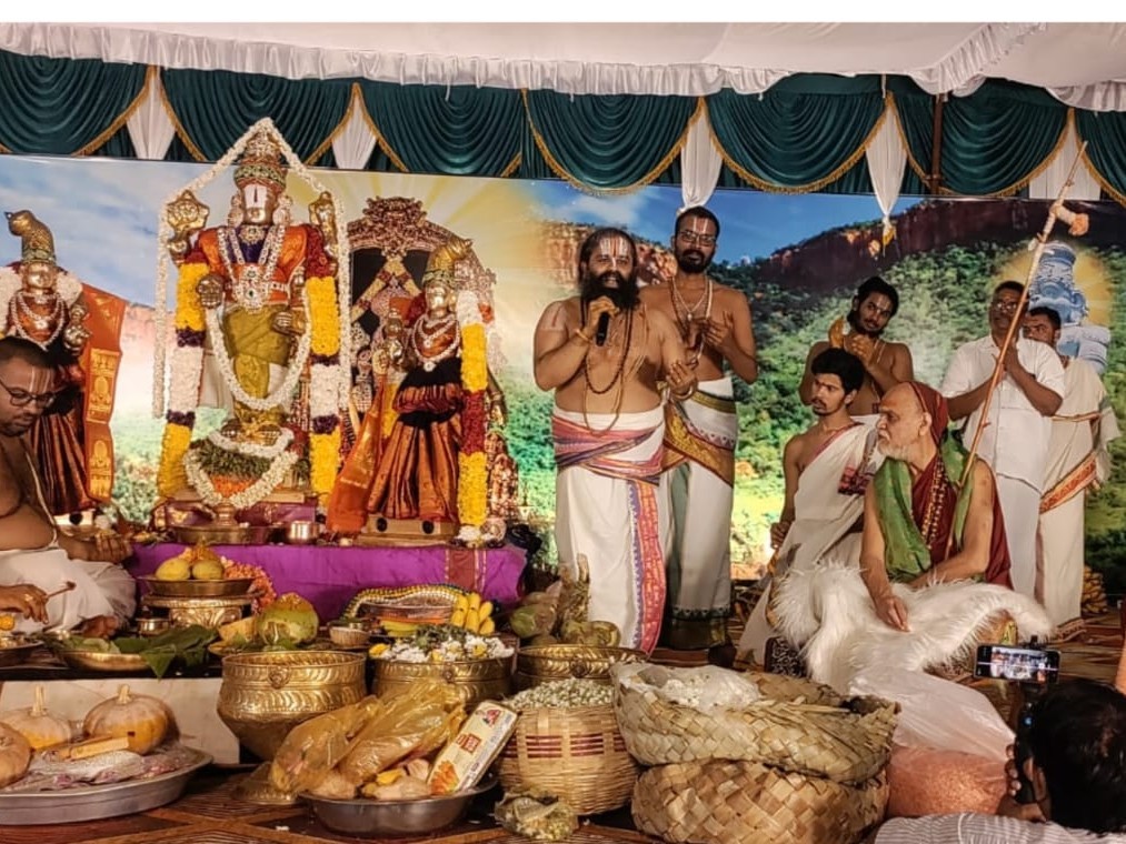 VZM: రాజాం మండలం శ్యాంపురం గ్రామ పరిధిలోని బ్రాహ్మణ అగ్రహారంలో శ్రీ శ్రీనివాస కళ్యాణ మహోత్సవం ఘనంగా కొనసాగుతోంది. విశాఖ శ్రీ శారదా పీఠాధిపతులు శ్రీ స్వరూపానందేంద్ర సరస్వతీ స్వామి, స్మాత్మానందేంద్ర సరస్వతీ స్వామి వారి ఆధ్వర్యంలో ఈ కార్యక్రమం నిర్వహిస్తున్నారు. భక్తుల సమక్షంలో జరుగుతున్న ఈ మహోత్సవంలో ప్రత్యేక పూజలు, వేద పారాయణాలు నిర్వహించారు.