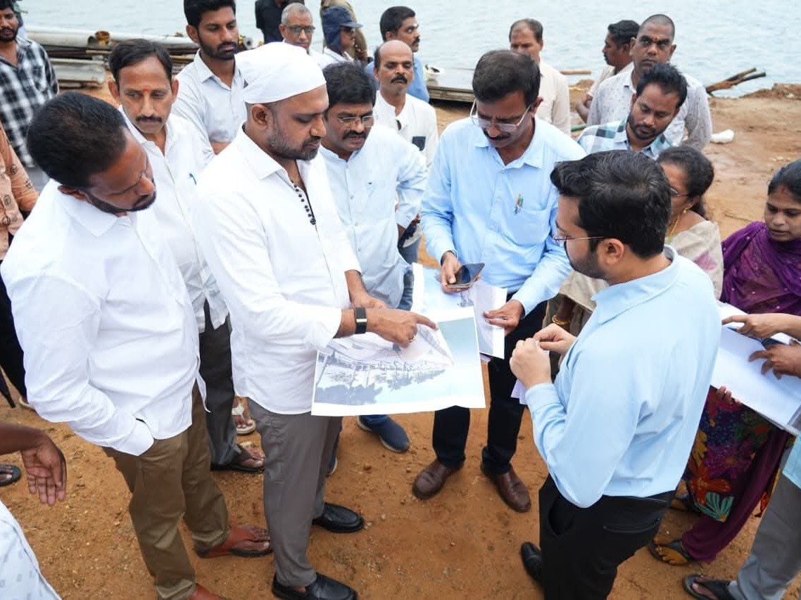 E.G: రాజమండ్రిలో జరుగుతున్న గోదావరి రివర్ ఫ్రంట్ అభివృద్ధి పనులను రాజమండ్రి సిటీ MLA ఆదిరెడ్డి శ్రీనివాస్ సోమవారం క్షేత్రస్థాయిలో పరిశీలించారు. నగర పాలక సంస్థ కమిషనర్ రాహుల్ మీనా ఇతర అధికారులతో కలిసి ప్రతి పనిని క్షుణ్ణంగా సమీక్షించారు. పనుల వేగాన్ని మరింత పెంచి త్వరగా పూర్తి చేసి ప్రజలకు అందుబాటులోకి తీసుకురావాలని అధికారులకు ఆదేశాలు జారీ చేశారు.