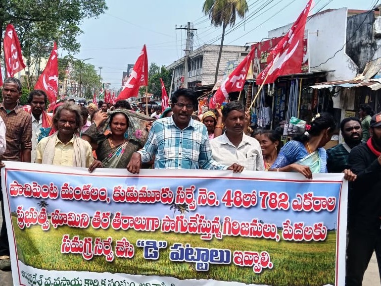 PPM: జిల్లాలో గిరిజనులు సాగు చేస్తున్న భూములకు పట్టాలు ఇవ్వాలని సీపీఎం జిల్లా కార్యదర్శి అన్యాక్రాంతం, గంగునాయుడు డిమాండ్ చేశారు. ఈ మేరకు సోమవారం ఆర్టీసీ కాంప్లెక్స్ నుంచి కలక్టర్ ఆఫీస్ వరకు ర్యాలీ నిర్వహించి కలెక్టరేట్ ముందు ధర్నా చేశారు. అనంతరం ఆయన మాట్లాడుతూ.. జిల్లాలో తరతరాలుగా సాగు చేస్తున్న గిరిజనులకు పేదలకు పట్టాలు ఇవ్వడం లేదన్నారు.