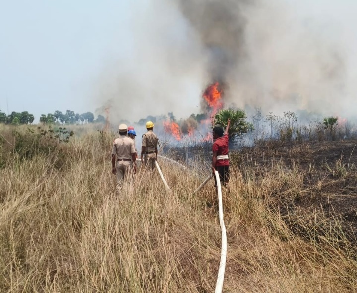 VZM: గజపతినగరం మండలంలోని తుమ్మి కాపల్లి గ్రామంలో ఇవాళ జరిగిన అగ్ని ప్రమాదంలో మామిడి టేకు తోటలు కాలిపోయాయి. గ్రామానికి చెందిన ఎస్ శంకర్ ఎస్ పైడితల్లి ఎస్ నారాయణప్పుడు కె తాతి నాయుడు కె నారాయణల కు చెందిన 10 ఎకరాల విస్తీర్ణంలో గల మామిడి టేకు తోటలో కాలిపోవడంతో రూ. లక్ష వరకు ఆస్తి నష్టం సంభవించిందని స్థానికులు తెలపారు. సమాచారం అందుకున్న అగ్నిమాపక సిబ్బంది మంటలను ఆర్పివేశారు.