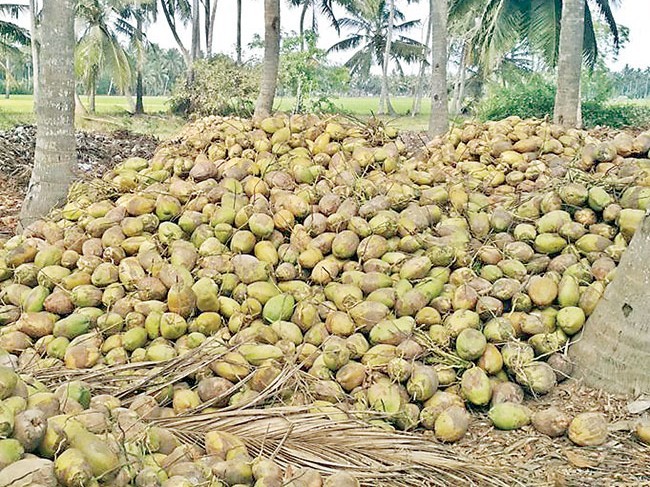 కోనసీమ: జిల్లాలో కొబ్బరికాయ ధరలు నిలకడగా కొనసాగుతున్నాయి. గత వారం రోజుల నుంచి కొబ్బరి కాయ రూ.16 నుంచి రూ.18 వరకు పలుకుతుంది. అయితే ధర బాగానే ఉన్నా పంట దిగుబడి లేదని రైతులు వాపోతున్నారు. గతంలో ఎకరానికి 1000 కొబ్బరికాయ వచ్చే చోట ఇప్పుడు 500 కూడా రావడం లేదని వాపోతున్నారు. దిగుబడి లేకపోవడంతో ఎంత రేటు ఉన్నా ప్రయోజనం లేదంటున్నారు.