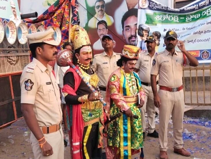 BPT: కర్లపాలెం హైలాండ్ సెంటర్లో పోలీసులు రోడ్డు భద్రతపై అవగాహన కోసం భిన్నంగా ప్రచారం చేపట్టారు. యముడు, చిత్రగుప్త వేషధారణలతో ర్యాలీ నిర్వహించి హెల్మెట్ ప్రాముఖ్యతను వివరించారు. ‘శిరో రక్ష–ప్రాణ రక్ష’ కార్యక్రమంలో భాగంగా ప్రతి వాహనదారు హెల్మెట్ తప్పనిసరిగా ధరించాలని సూచించారు.