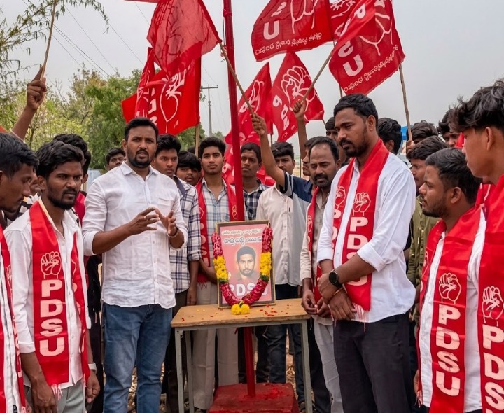 KRNL: మతోన్మాద ఫాసిజానికి వ్యతిరేకంగా పోరాటమే జార్జిరెడ్డికి నిజమైన నివాళి అని పీడీఎస్యూ రాష్ట్ర అధ్యక్షుడు కె.భాస్కర్ పేర్కొన్నారు. ఇవాళ రాయలసీమ యూనివర్సిటీ వద్ద 54వ వర్ధంతి సందర్భంగా నివాళులు అర్పించారు. ఆయన స్ఫూర్తితో విద్యార్థుల సమస్యల పరిష్కారానికి కృషి చేస్తామని PDSU నాయకులు తెలిపారు.