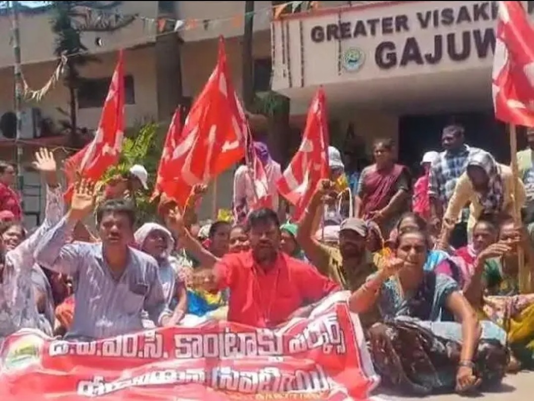 VSP: జీవీఎంసీ కాంట్రాక్ట్ వర్కర్లు తమ జీతాల కోసం ఆందోళన బాట పట్టారు. పారిశుద్ధ్య, డే నైట్, ప్యాకేజీ వర్కర్లకు వెంటనే వేతనాలు చెల్లించాలని డిమాండ్ చేస్తూ గాజువాక జోనల్ కార్యాలయం వద్ద నిరసన చేపట్టారు. శనివారంలోగా జీతాలు అందకపోతే, ఈనెల 20 (సోమవారం) నుంచి నిరవధిక సమ్మెకు దిగుతామని యూనియన్ ప్రతినిధులు హెచ్చరించారు.