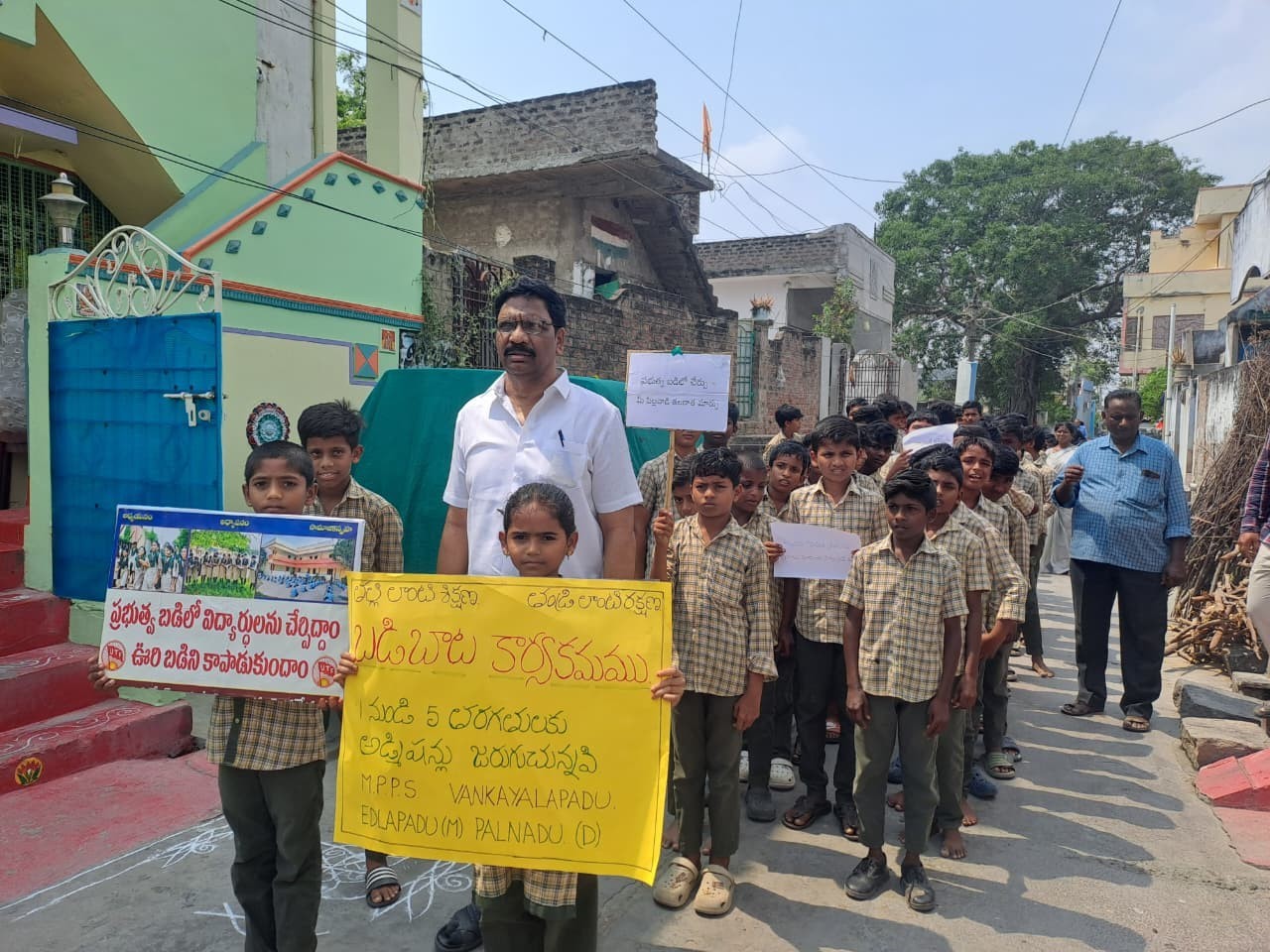 PLD: ఎడ్లపాడు మండలం వంకాయలపాడులో గురువారం ‘బడిబాట’ కార్యక్రమం ఉత్సాహంగా జరిగింది. స్థానిక మండల పరిషత్ ప్రాథమిక పాఠశాల, జడ్పీ ఉన్నత పాఠశాలల ఆధ్వర్యంలో విద్యార్థులు ర్యాలీ నిర్వహించారు. ఉపాధ్యాయులు, విద్యార్థులు గ్రామంలో పర్యటిస్తూ విద్యా ప్రాముఖ్యతను వివరించారు. బడి ఈడు పిల్లలందరినీ తప్పకుండా బడిలో చేర్పించాలని తల్లిదండ్రులకు అవగాహన కల్పించారు.