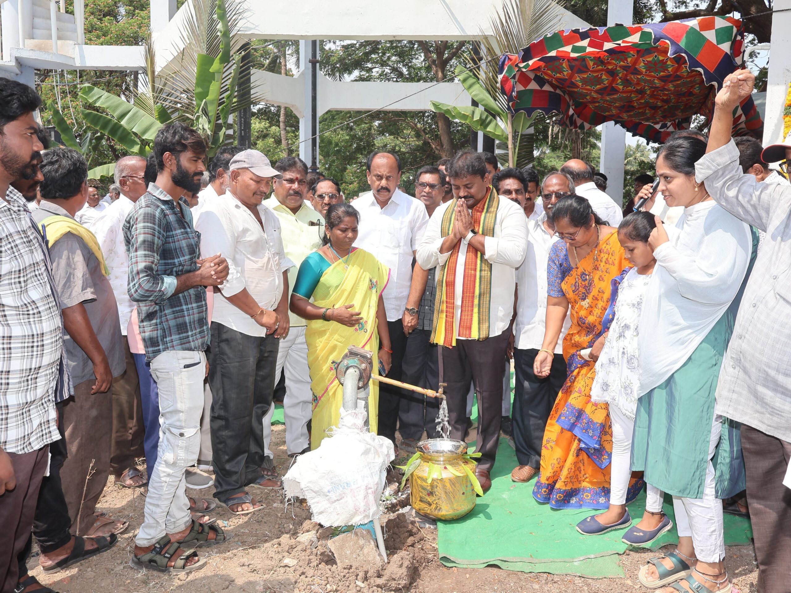 కృష్ణా: పామర్రులో జల్ జీవన్ మిషన్ పథకం కింద రూ.2.30 కోట్లతో నిర్మించిన భారీ నీటి సరఫరా ప్రాజెక్ట్ను MLA వర్ల కుమార్ రాజా సోమవారం ప్రారంభించారు. గంగానమ్మ గుడి వద్ద 1.50 లక్షల లీటర్ల ట్యాంక్, పైప్లైన్ పనులు పూర్తయ్యాయని తెలిపారు. రూ.2.80 లక్షలతో పంప్హౌస్ను కూడా ప్రారంభించారు. ఈ ప్రాజెక్ట్తో గ్రామస్తుల తాగునీటి సమస్యలు పూర్తిగా తొలగుతాయని పేర్కొన్నారు.