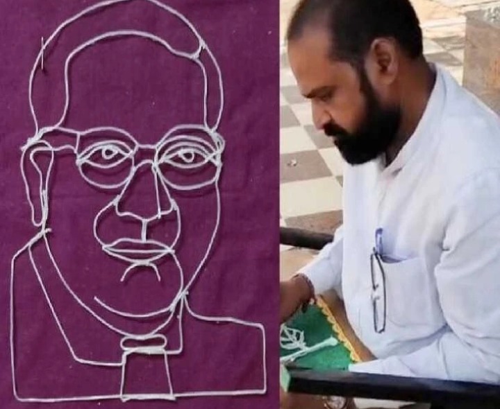 NLR: అంబేద్కర్ జయంతి సందర్భంగా కంపసముద్రానికి చెందిన తెలుగు ఉపాధ్యాయుడు శివశంకర్ అంబేద్కర్ ఫొటోను దారంతో తయారు చేశారు. ఆయన ఆకులపై పలు చిత్రాలను, తాళపత్ర గ్రంథాలను రచించే కళతో పాటు దారంతో చిత్రాలు తయారు చేసే ఏకైక కళాకారుడు కూడా కావడం విశేషం. అంబేడ్కర్ జయంతి సందర్భంగా వారి చిత్రాన్ని గీసి అబ్బురపరిచారు.