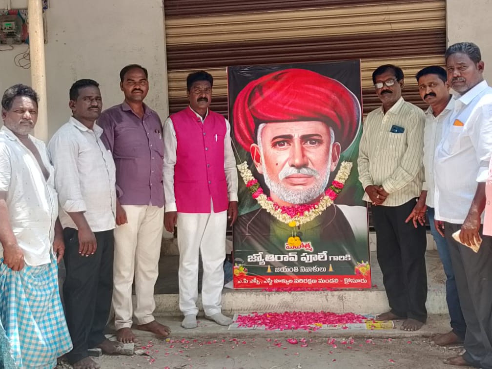 PLD: మహాత్మ జ్యోతిరావు పూలే 199వ జయంతి సందర్భంగా ఏపీ ఎస్సీ, ఎస్టీ హక్కుల పరిరక్షణ మండలి రాష్ట్ర ప్రజలకు శుభాకాంక్షలు తెలిపారు. రాష్ట్ర అధ్యక్షులు బుల్ల రాజారావు పిలుపు మేరకు శుక్రవారం క్రోసూరులో ఆయన చిత్రపటానికి పూలమాలలు వేసి ఘనంగా నివాళులు అర్పించారు. రాష్ట్ర హానర్బల్ ఛైర్మన్ సేవరత్న గార్లపాటి దాసు జ్యోతిరావు పూలే గురించి మాట్లాడారు.