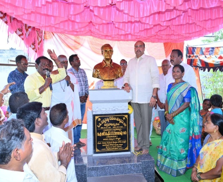 VZM: బొబ్బిలి, గొల్లపల్లి గ్రామానికి చెందిన స్వర్గీయ సర్వసిద్ధి రమణ మాస్టారు విగ్రహాన్ని ఎమ్మెల్యే ఆర్.వీ.ఎస్.కె.కె.రంగారావు (బేబీ నాయన) ఇవాళ బొబ్బిలిలో ఆవిష్కరించారు. ఈ సందర్భంగా ఎమ్మెల్యే మాట్లాడుతూ.. రమణ మాస్టారు ఒక గొప్ప సామాజిక కార్యకర్తగా గొల్లపల్లి గ్రామానికి ఎనలేని సేవలు అందించారని కొనియాడారు.