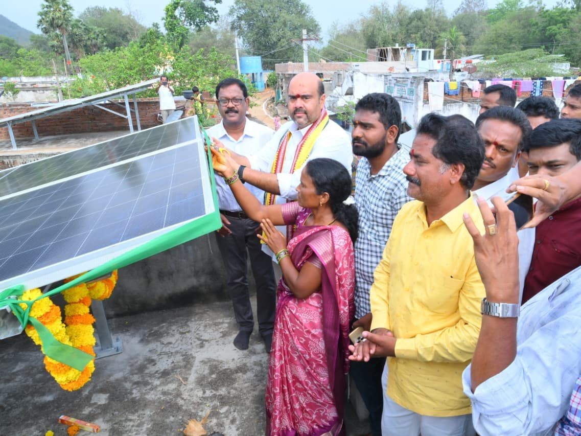 VZM: బొబ్బిలి మండలం, రాజాచెరువువలస గ్రామంలో ప్రధాన మంత్రి ఎస్సీ/ఎస్టీ సూర్యఘర్ యోజన ఉత్సవ్ పథకాన్ని ఎమ్మెల్యే బేబీ నాయన ప్రారంభించారు. ఈ సందర్భంగా ఎమ్మెల్యే మాట్లాడుతూ.. పీఎం సూర్య ఘర్ ముఫ్త్ బిజిలీ యోజన పథకం అనేది రూ.75,000 కోట్ల పెట్టుబడితో కోటి ఇళ్లపై సోలార్ ప్యానెల్స్ ఏర్పాటు చేసిన పథకమన్నారు.