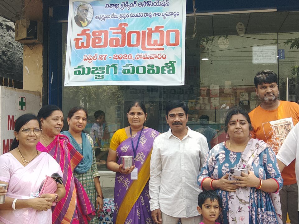 VSP: విశాఖ మురళీనగర్ సెక్టార్-11లో ట్రెక్కింగ్ అసోసియేషన్ ఆధ్వర్యంలో చలివేంద్రం ఏర్పాటు చేశారు. దివంగత కె. త్రిపురసుందరరావు జ్ఞాపకార్థం నిర్వహిస్తున్న ఈ సేవా కార్యక్రమంలో పాదచారులు, కార్మికులకు ప్రతిరోజూ మంచినీరు, మజ్జిగ అందజేస్తున్నారు. ఈ చలివేంద్రం 50 రోజుల పాటు కొనసాగనున్నట్లు నిర్వాహకులు తెలిపారు. కార్యక్రమంలో పలు సంఘాల ప్రతినిధులు పాల్గొన్నారు.