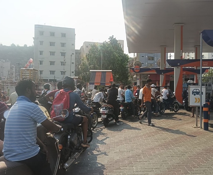 VSP: మధురవాడ, మారికవలస ప్రాంతాల్లో పలుచోట్ల పెట్రోల్ బంకులు మూతపడటంతో వాహనదారులు ఇబ్బందులు ఎదుర్కొన్నారు. ప్రస్తుతం పనిచేస్తున్న కొమ్మాది బంక్ వద్ద ఇవాళ భారీగా క్యూలు కనిపించాయి. గంటల తరబడి వేచి ఉండాల్సి రావడంతో ప్రజలు అసహనం వ్యక్తం చేస్తున్నారు. సరఫరా లోపం కారణమని సిబ్బంది చెబుతున్నారు. అధికారులు తక్షణ చర్యలు తీసుకోవాలన్నారు.