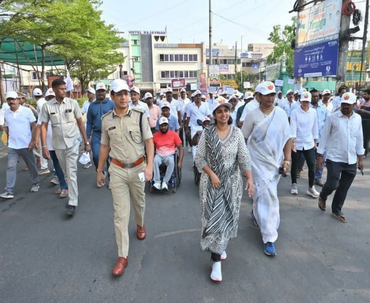 KRNL: కర్నూలు నగరంలో ‘నషా ముక్త్ భారత్’ అవగాహనలో భాగంగా రాజవిహార్ నుంచి కలెక్టరేట్ వరకు నిర్వహించిన వాకథాన్ను ఇవాళ కలెక్టర్ ఏ.సిరి ప్రారంభించారు. యువత మాదకద్రవ్యాల బారిన పడకుండా లక్ష్యాల సాధనపై దృష్టి సారించాలని ఆమె సూచించారు. పిల్లల పట్ల తల్లిదండ్రులు జాగ్రత్తగా ఉండాలని కోరారు. మంచి అలవాట్లతోనే ఉన్నత శిఖరాలను అధిరోహించడం సాధ్యమవుతుందన్నారు.