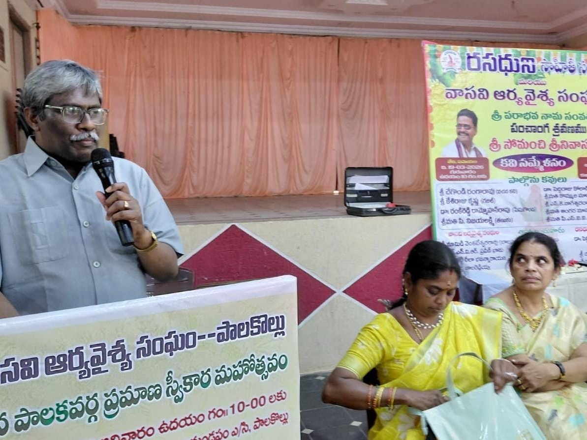 W.G: రసధుని సాహిత్య సంస్థ, వాసవీ ఆర్య వైశ్య సంఘం సంయుక్తంగా గురువారం పాలకొల్లులో నిర్వహించిన ఉగాది వేడుకలలో భాగంగా నిర్వహించిన ఉగాది కవి సమ్మేళనంలో పాలకొల్లుకు చెందిన ఉపాధ్యాయుడు, కవి కొల్లాబత్తుల సూర్య కుమార్ పాల్గొన్నారు. ఉగాది పండుగ వైశి