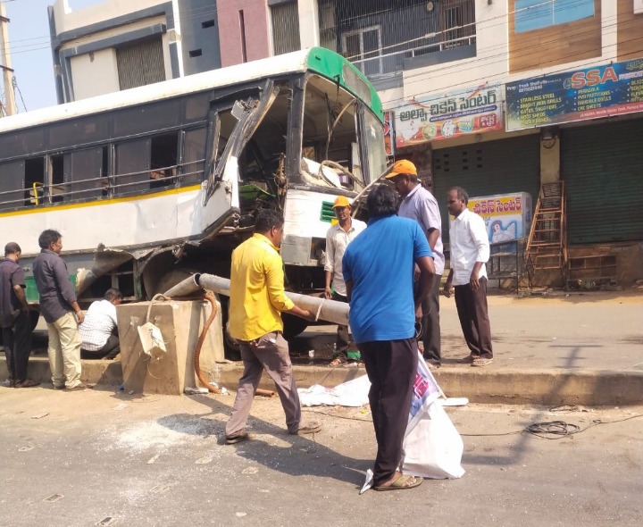 నంద్యాల పట్టణంలోని ఫరూక్ నగర్లో ఇవాల ఆర్టీసీ బస్సు అదుపుతప్పి కరెంటు స్తంభాన్ని ఢీకొట్టింది. ఈ ప్రమాదంలో స్తంభం విరిగి పడడంతో ప్రాంతంలో భయాందోళన నెలకొంది. ఘటన సమయంలో పెద్ద ప్రమాదం తప్పిందని ప్రయానికులు ఊపిరి పీల్చుకున్నారు. స్థానికులు