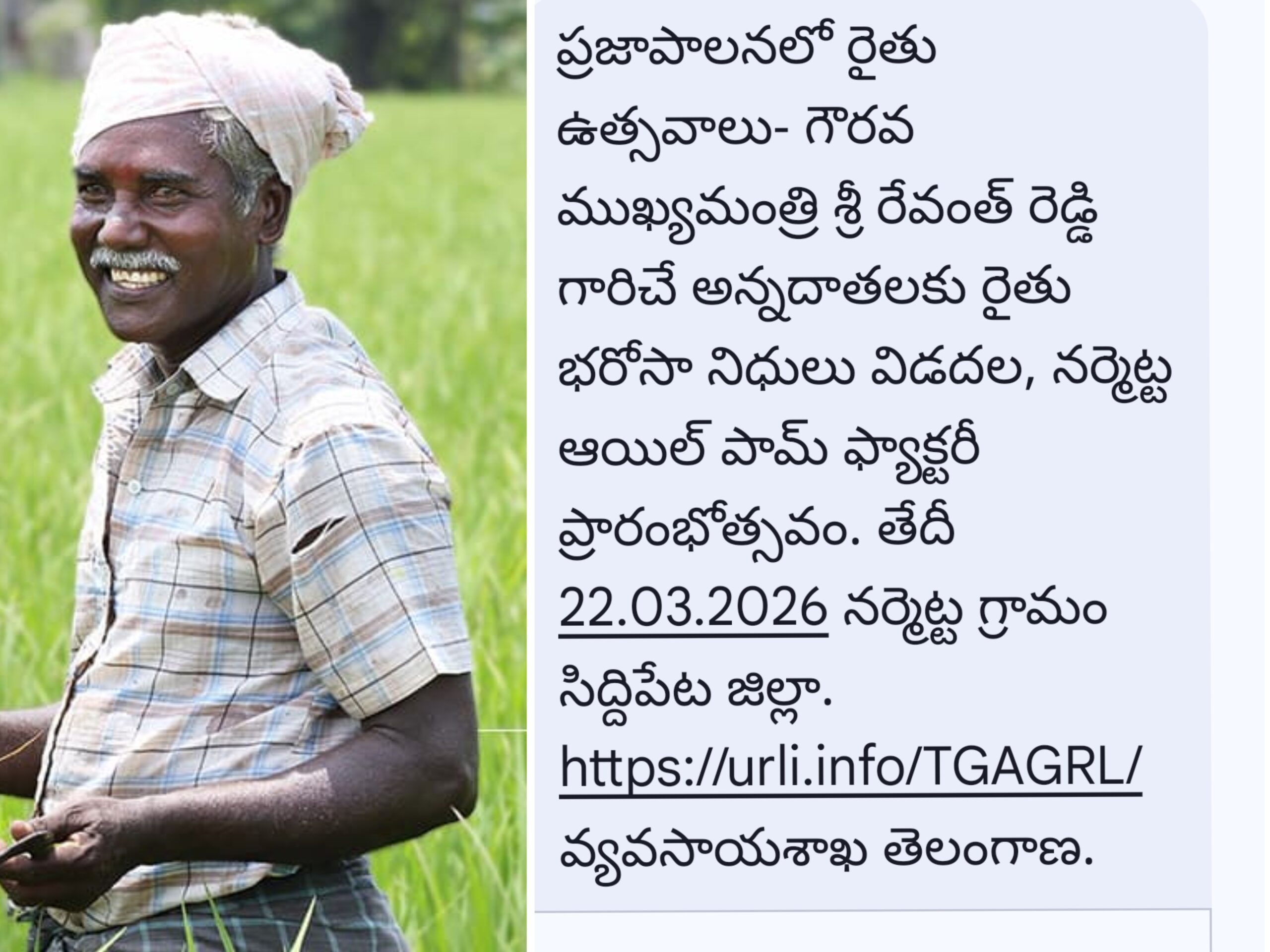 MDCL: మార్చి 22వ తేదీ నుంచి తెలంగాణ రాష్ట్ర ప్రభుత్వం రైతులకు రైతు భరోసా అందిస్తుందని, ఇందులో భాగంగానే ప్రజా పాలనలో రైతు ఉత్సవాలను నేడు రాష్ట్ర సీఎం రేవంత్ రెడ్డి సిద్దిపేట నర్మెట్టలో ప్రారంభిస్తారని మేడ్చల్ జిల్లా రైతులకు మెసేజెస్ వచ్చినట్లు