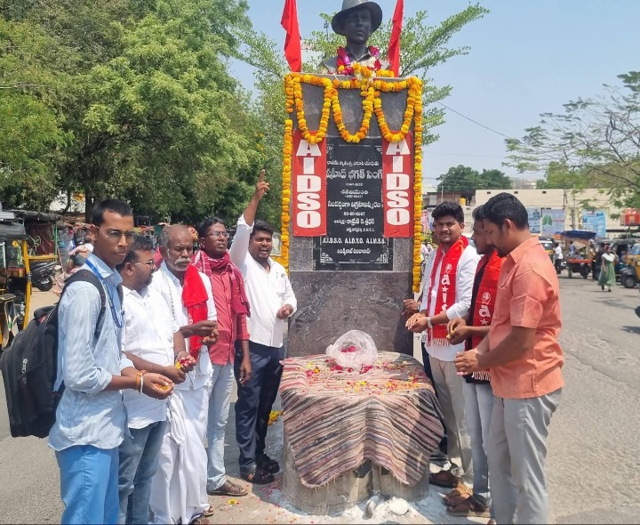 అనంతపురంలో విప్లవ వీరుడు భగత్ సింగ్ 95వ వర్ధంతిని పురస్కరించుకుని సీపీఐ (ఎంఎల్) లిబరేషన్ ఆధ్వర్యంలో నివాళులర్పించారు. ఈ కార్యక్రమంలో పాల్గొన్న జిల్లా కార్యదర్శి వేమన మాట్లాడుతూ.. ఆయన ఆశయాలను కొనసాగించాలని పిలుపునిచ్చారు. ఏఐఎస్ఏ జిల్లా ఉపాధ